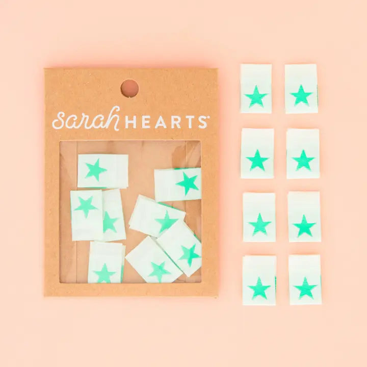 Add a touch of charm to your handmade projects with our Mint Green Star Woven Labels. These soft and easy-to-sew labels feature a delicate mint green star on a light green background. Perfect for adding a unique finishing touch to bags, garments, or quilts. The labels are fully washable and can handle the heat of the dryer.